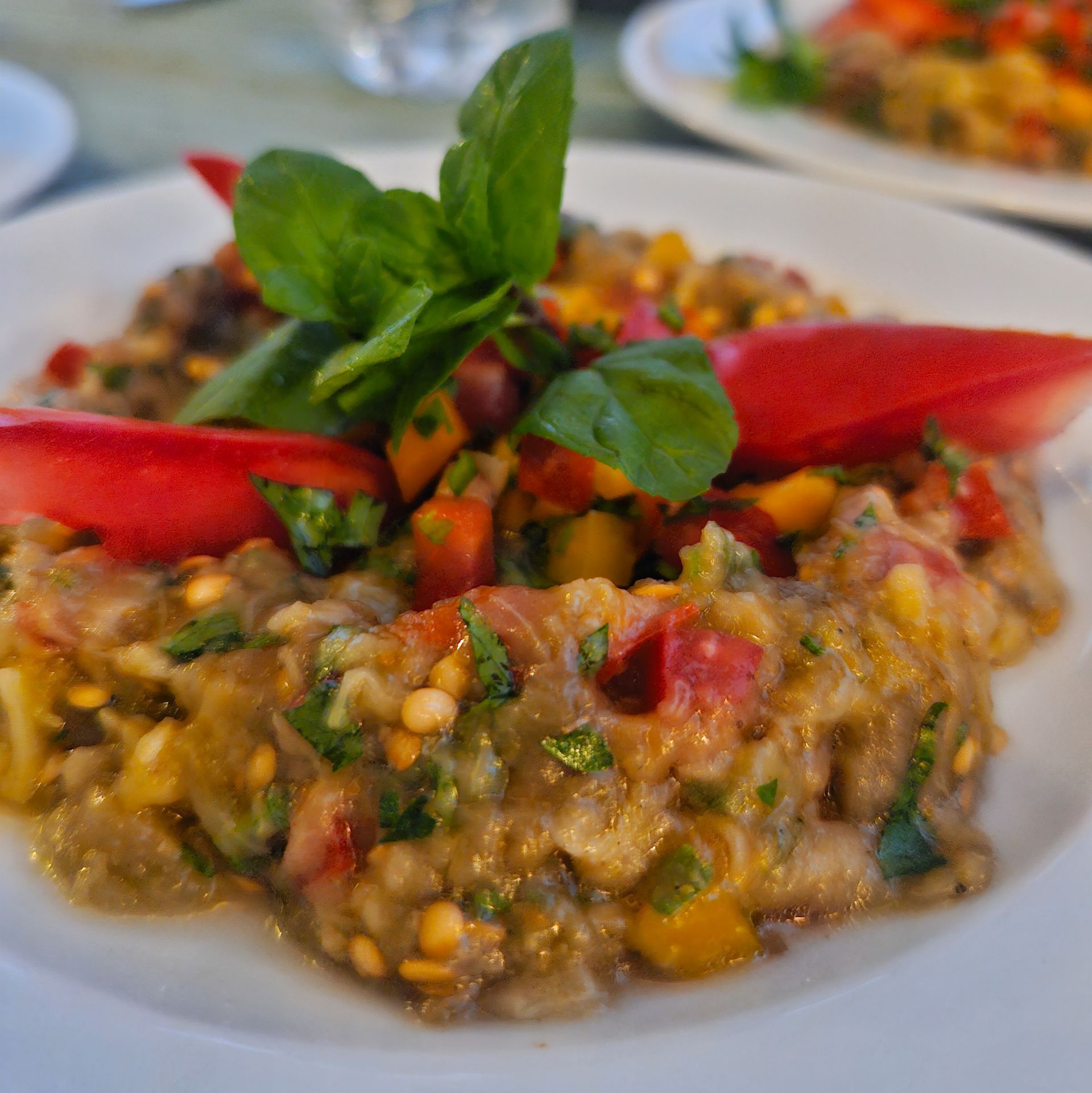 Traditional roasted eggplant dip with tahini, garlic, lemon, and parsley — 3.00 USD