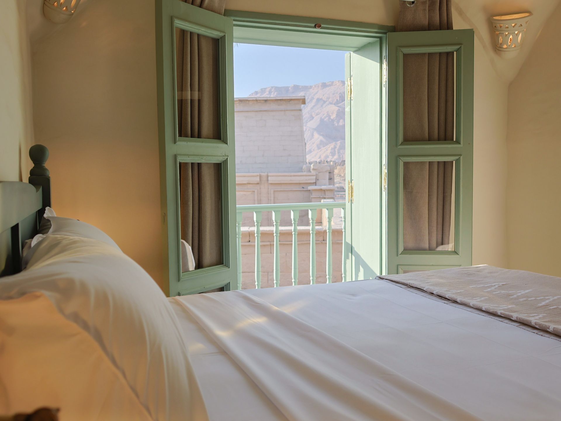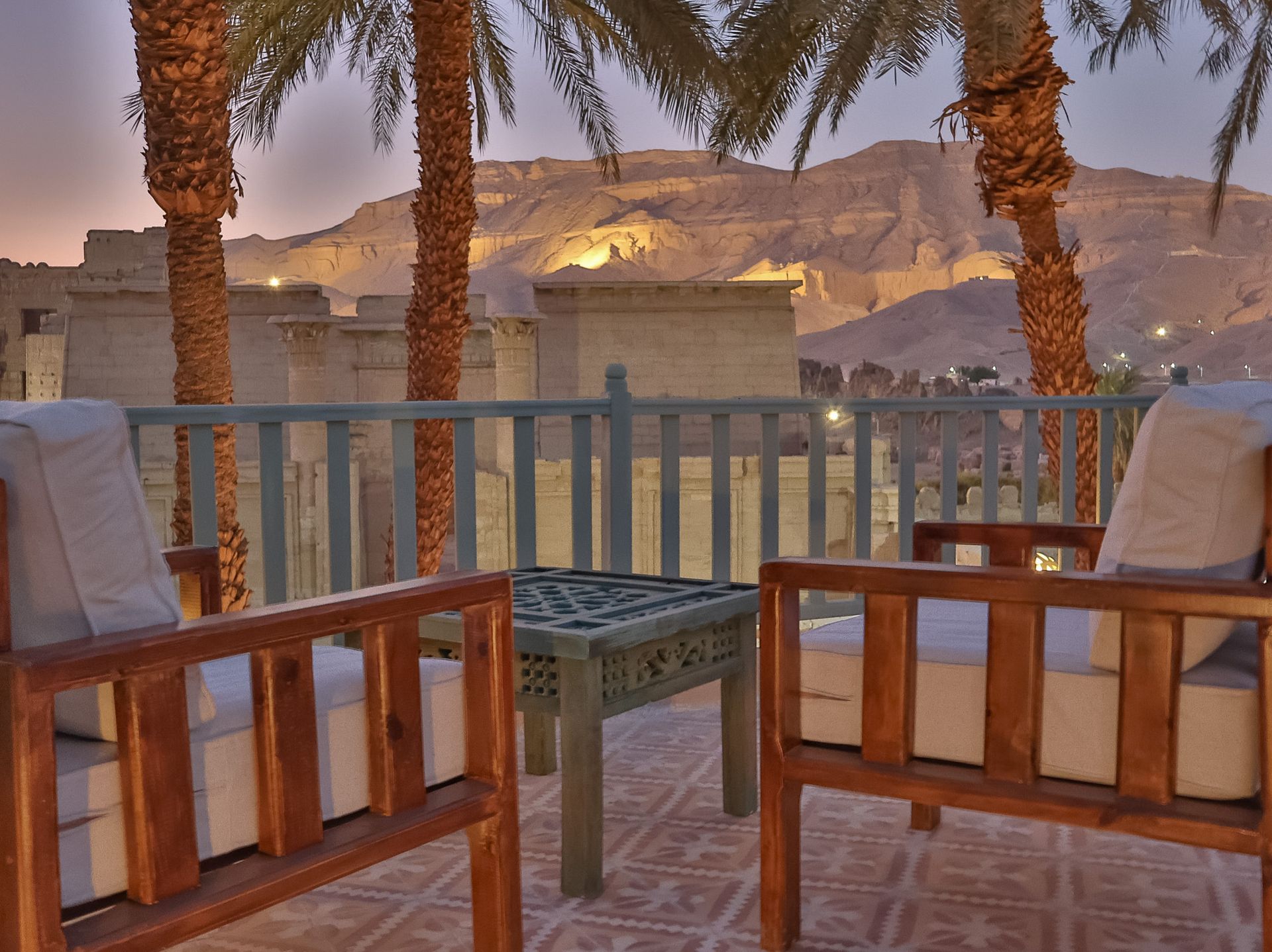 Discover the calm beauty of Habu Hotel — where heritage and simplicity meet. From the sunlit terraces and the pool to the rooftop views over Medinet Habu Temple, each image reflects the light, textures, and timeless atmosphere of Luxor’s West Bank.